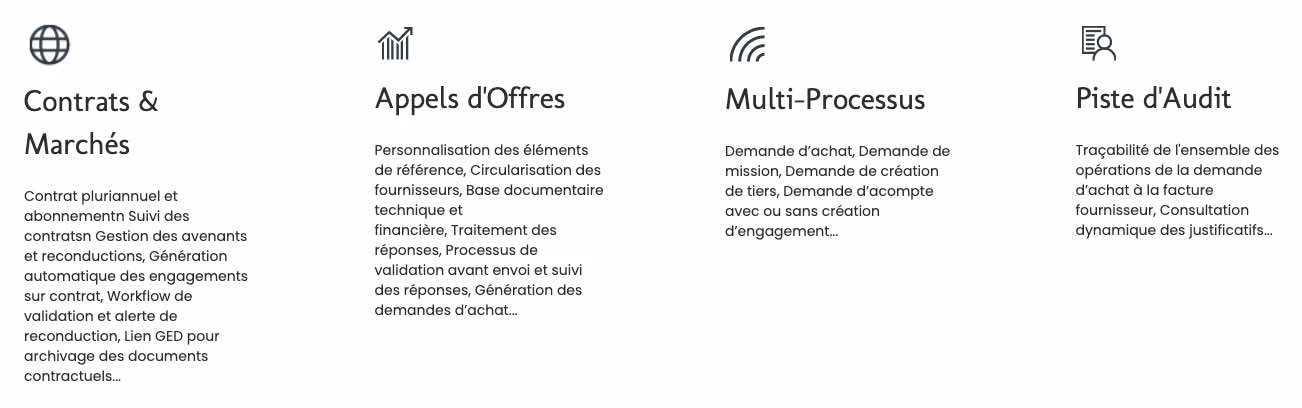 La solution Achats mise en oeuvre en entreprise est stratégique, offrant de multiples avantages (gain de productivité, conservation ou augmentation des marges...). Votre solution Achats est le moyen le plus efficace pour déléguer des tâches chronophages et permet à vos équipes de se focaliser sur le cœur de leur métier. Des outils informatiques adaptés sont les mieux à même d’optimiser la performance de vos achats et donc d'augmenter celle de votre entreprise.